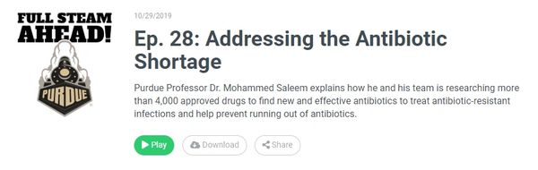 Purdue highlighted a few scientists who focus on the Giant Leaps themes and our lab was featured among 30 labs at Purdue with Giant Leaps Research.https://www.purdue.edu/newsroom/releases/2019/Q4/the-world-is-running-out-of-antibiotics.-this-researcher-is-working-on-finding-a-solution..html