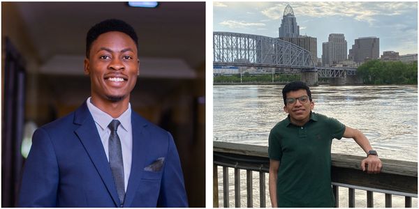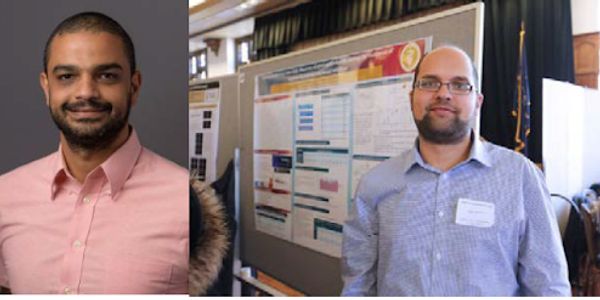 Haroon Mohamed (on the left) won first place for his poster “Pressure's Up: Can Auranofin Treat Infected Diabetic Pressure Ulcers (PUs)?”