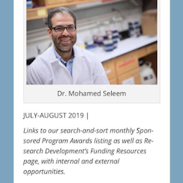 Dr. Seleem was interviewed by the exponent last week and the interview was published 4/22/2019.