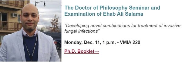 I am delighted to extend a warm welcome to our new postdoc Dr. Ehab Salama. Dr. Salama brings a wealth of expertise, holding a PharmD and a Master’s in Microbiology and Immunology from Al-Azhar University, Egypt. He recently earned his PhD from Virginia Tech, specializing in drug discovery, particularly antifungals. .He is an expert in drug discovery, particularly antifungals. We are thrilled to have him as a valued member of Seleem's group, and we look forward to the valuable contributions he will bring to our research endeavors. Please join me in welcoming Dr. Salama to our team!