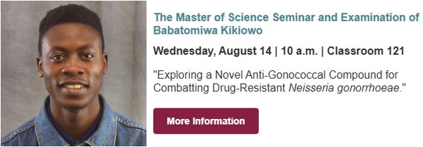 Please join us for the Master of Science Seminar and Examination for Babatomiwa Kikiowo.